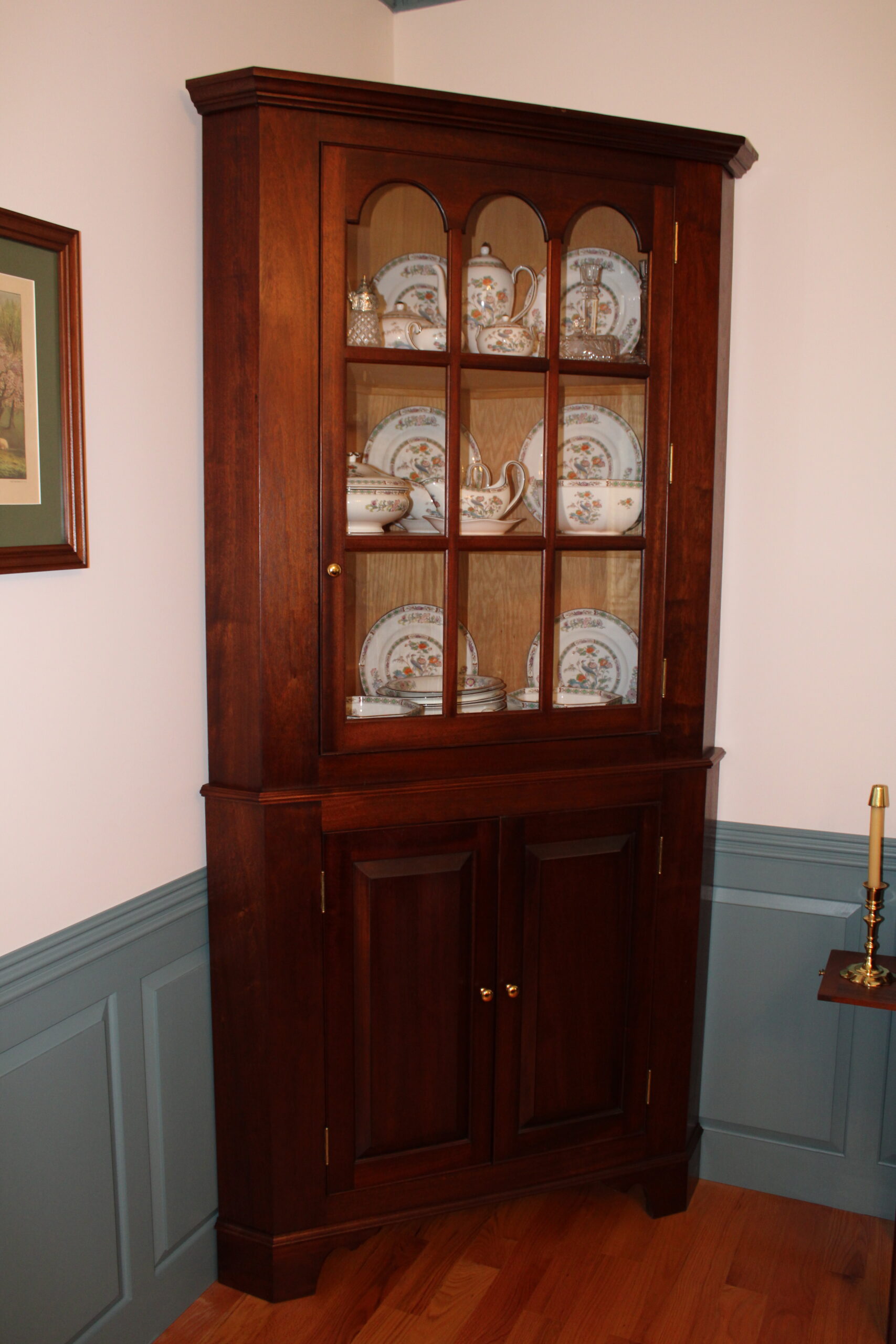 Details: Features 9 individual glass panes in upper door and raised panel doors on base. Available in Cherry and Walnut (please contact us using our form.)